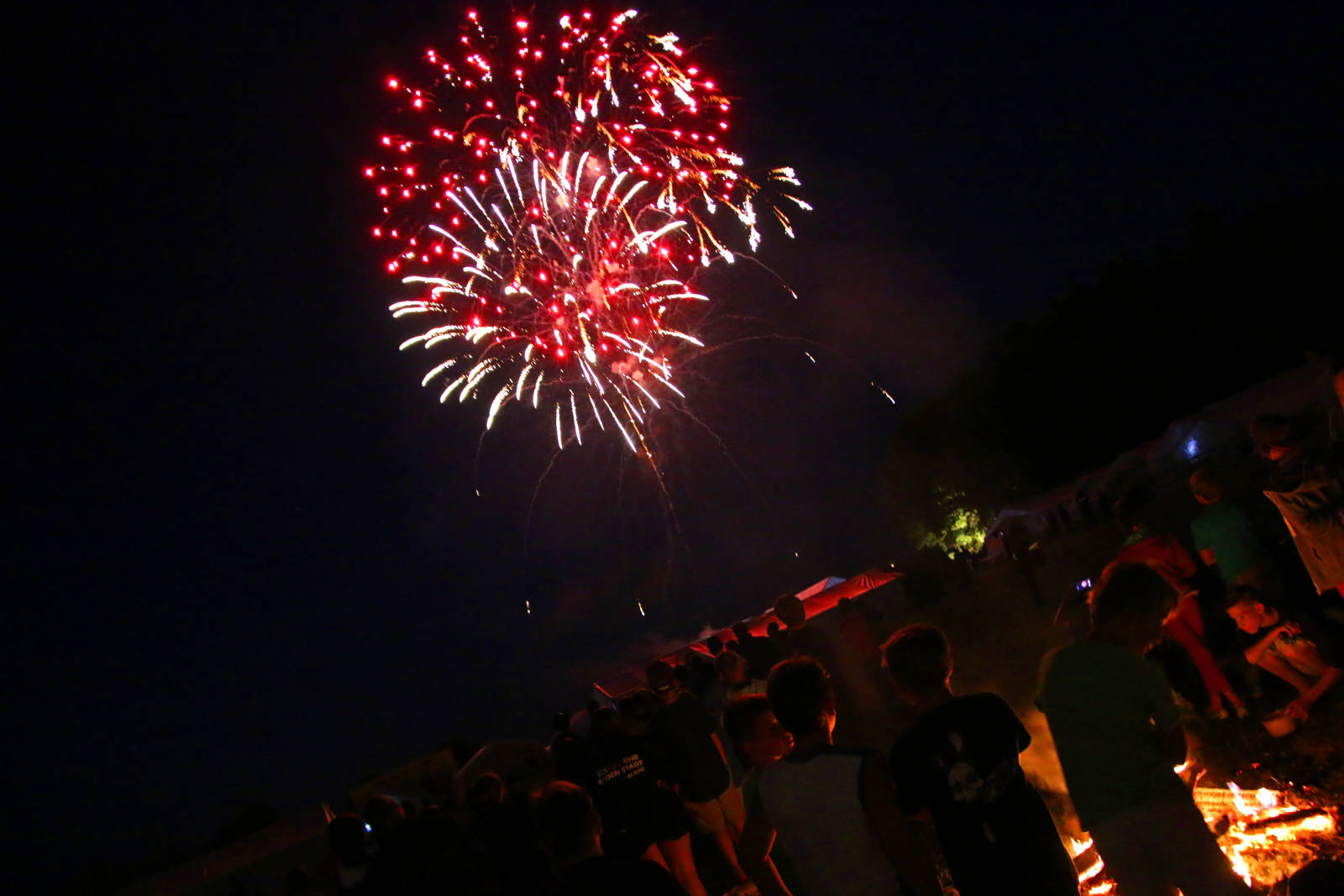 Lagerfeuer und Feuerwerk