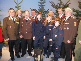 | Dabei wurden Sie begleitet von LFR Josef Thallauer, BI Mag. (FH) Pamela Hniliczka und V Franz Braunstein, sowie deren Feuerwehrkommandanten HBI Anton Schuh, Unterabschnittskommandanten HBI Josef Schrammel, Feuerwehrjugendführer Helmut Mold und Fotografen ASB Manfred Bierent von der FF Langenlois. |