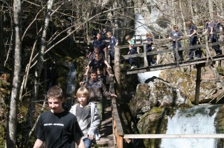 Der zweite Teil unseres Ausfluges führte uns zu den Myrafällen in Muggendorf. Pünktlich zur Mittagszeit kehrten wir im Gasthaus Karnerwirt bei Familie Hollinger ein. Nach dieser Stärkung wanderten wir bei herrlichem Wetter die Myrafälle hinunter. Beeindruckt von den Wasserfällen, Brücken und Staumauern trafen wir uns am Spielplatz des Myrateiches.